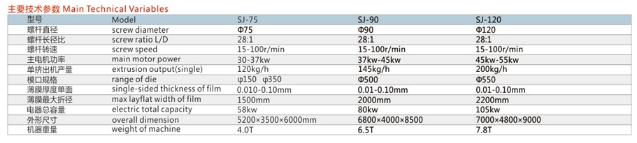 SJ-75、90、105、120系列聚乙烯吹膜機組