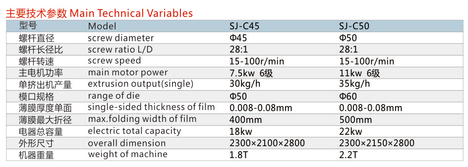 SJ-B45、 50系列簡易型高低壓吹膜機組